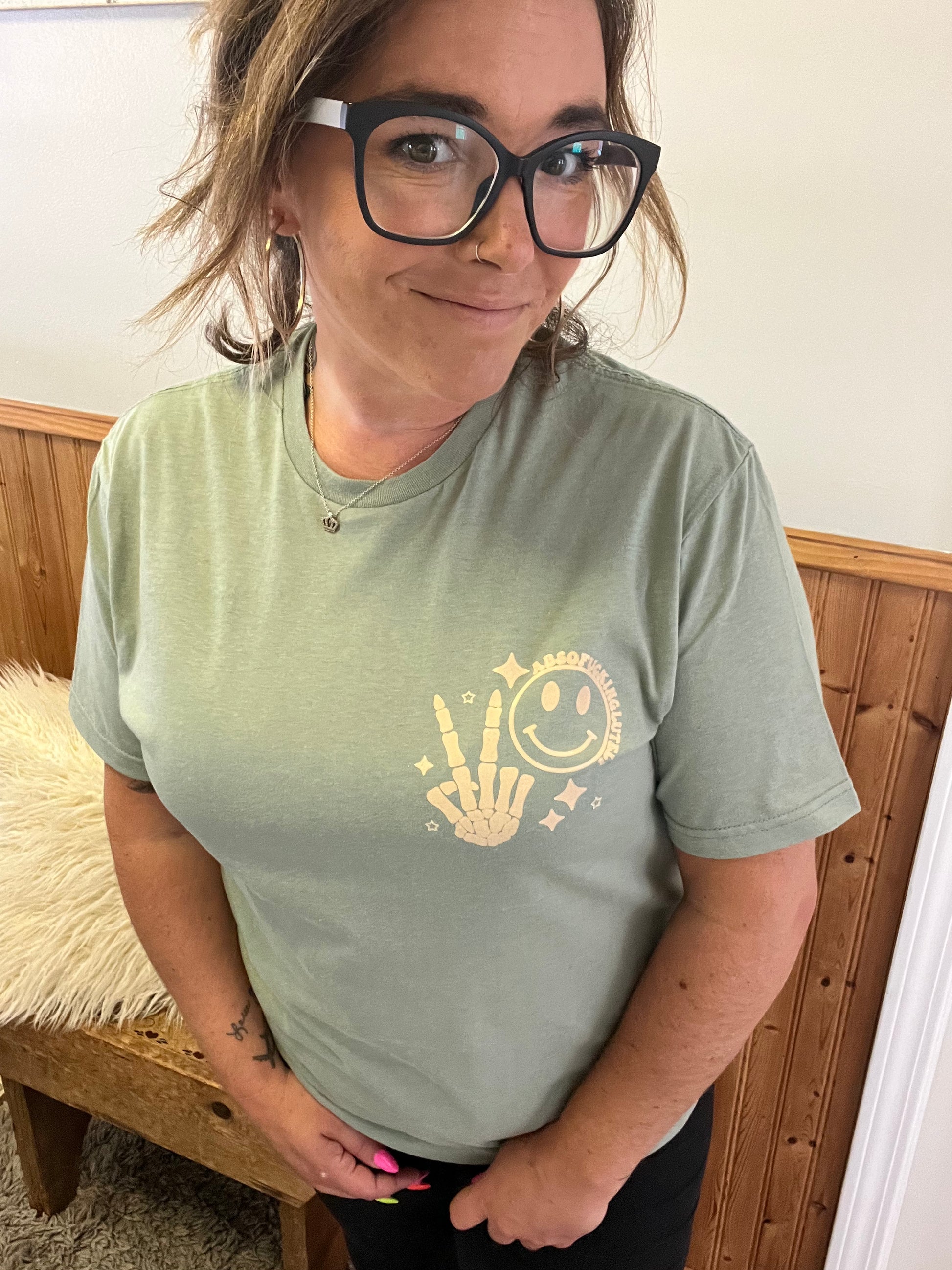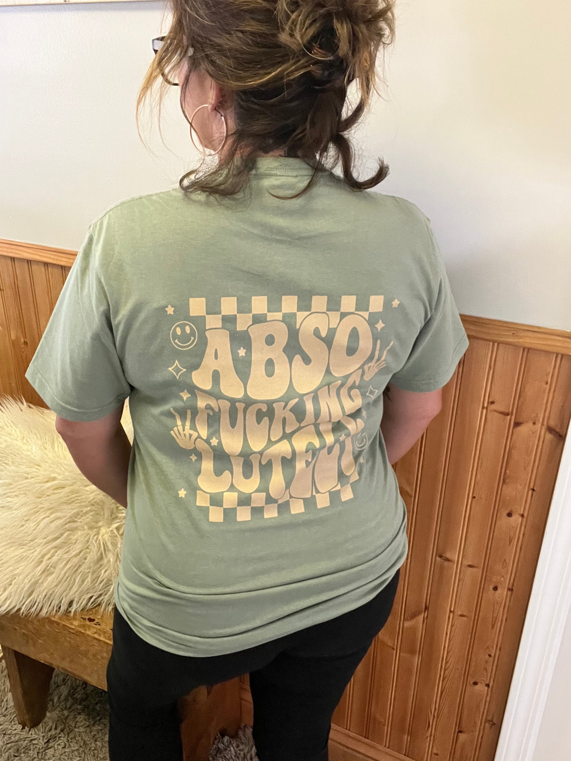 - ABSO FUCKING LUTELY brown screen print transfer on the back