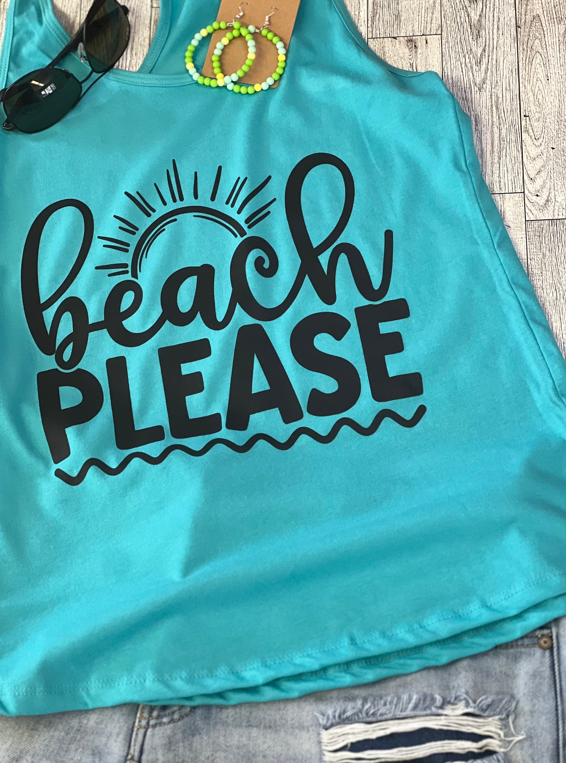 Sun's out, guns out in our Beach Please tank top razorback! This lightweight and breezy top will keep you cool in the summer heat, so you can focus on catching 'em all (waves, that is)! And with its razorback fit, you'll be the hottest one on the beach. Who said you can't look good and have a great time? Beach Please!