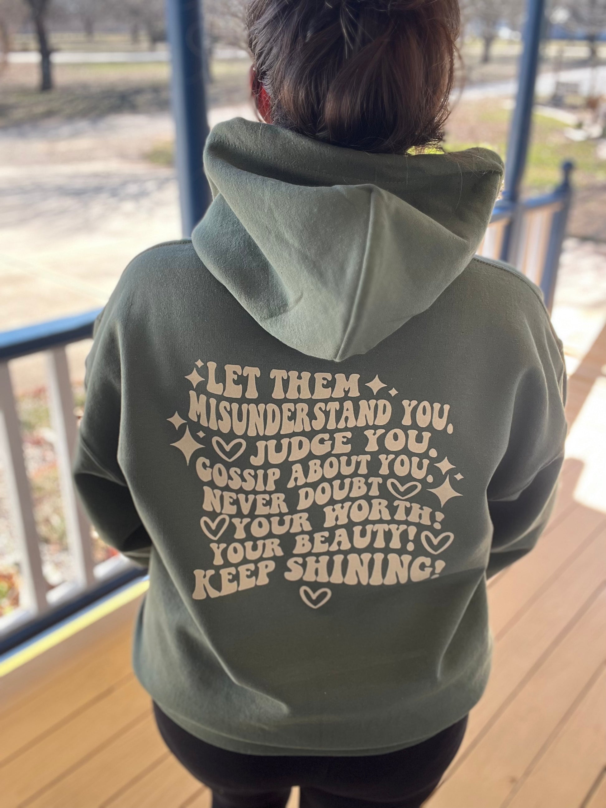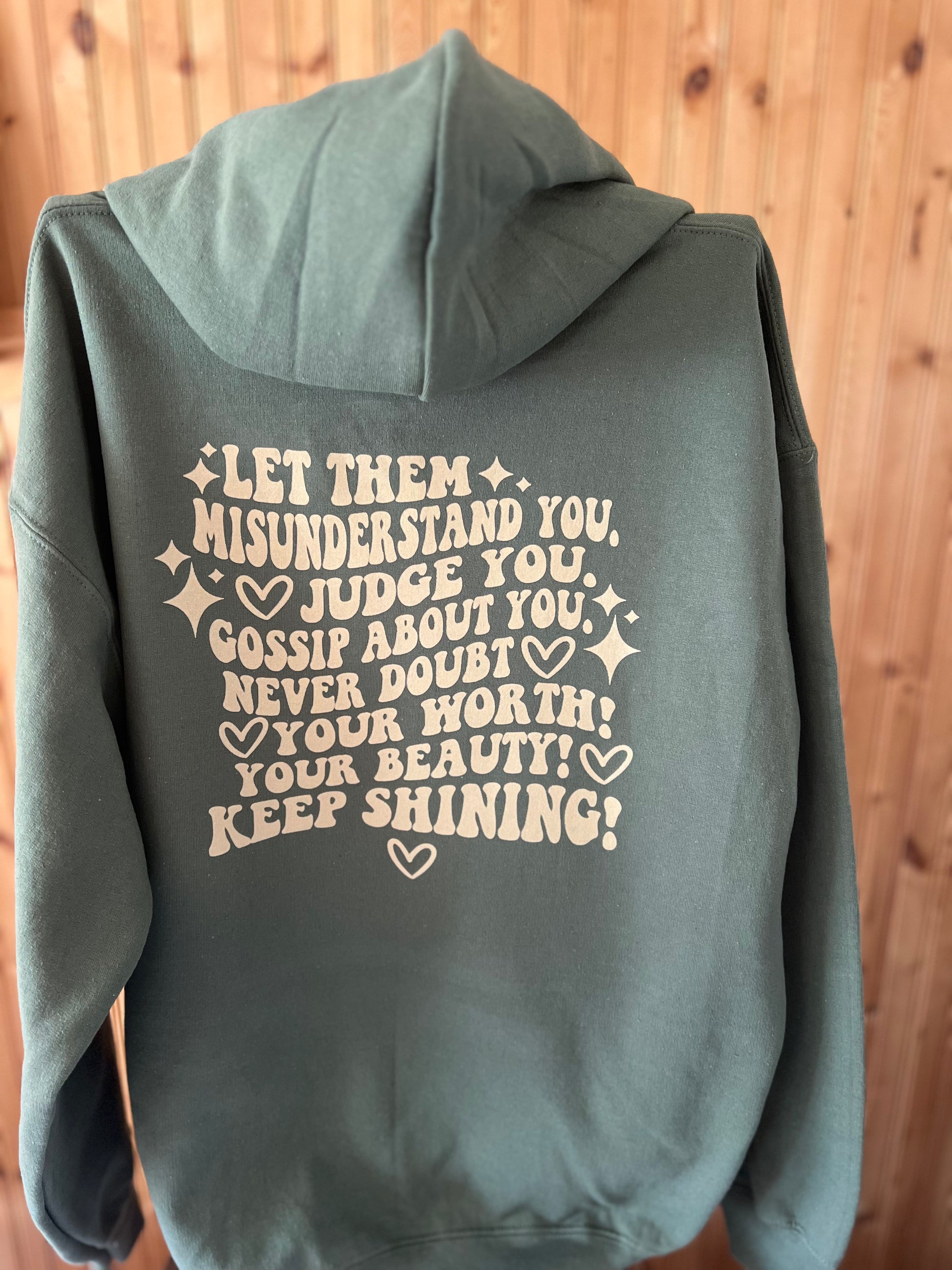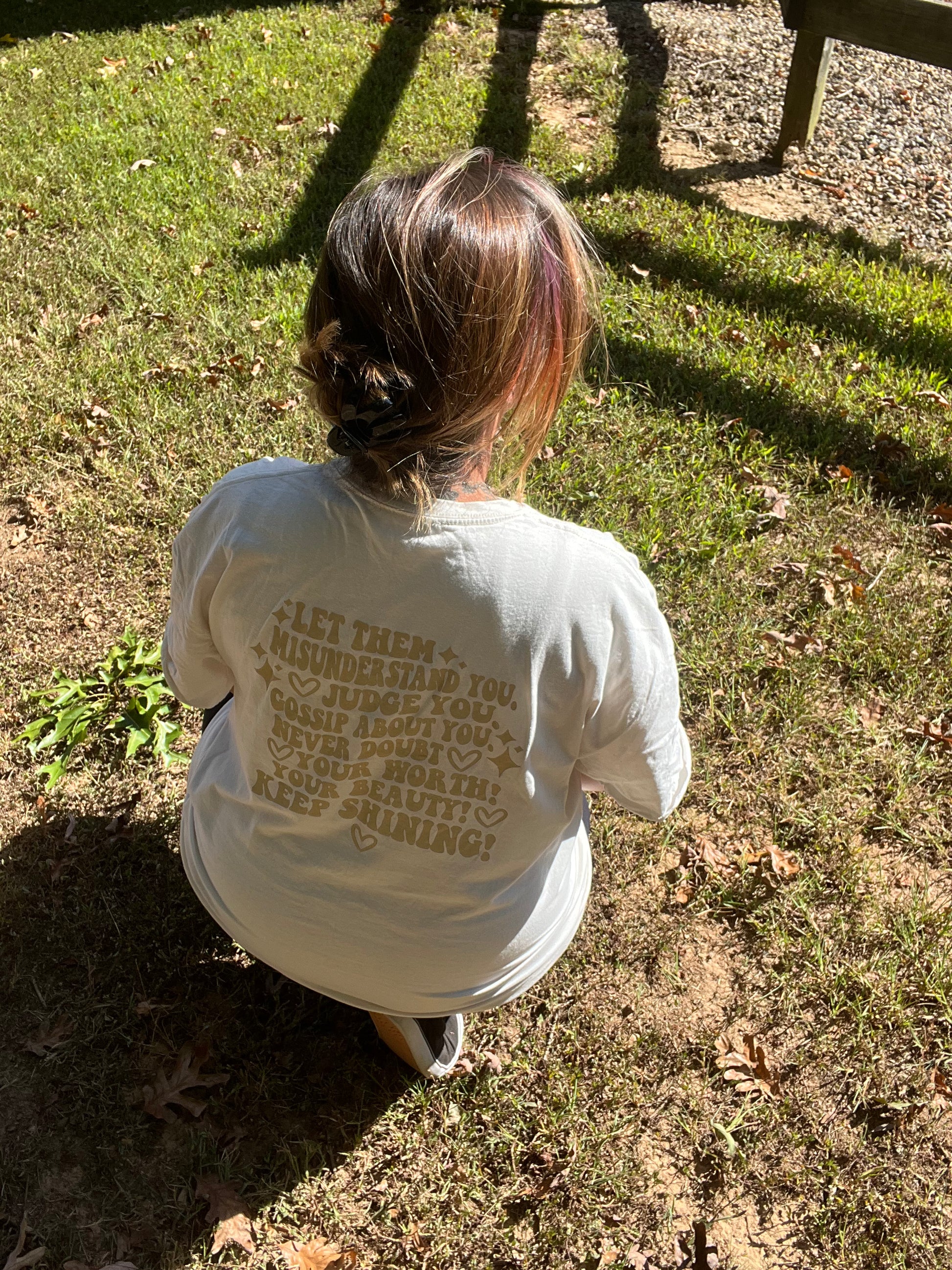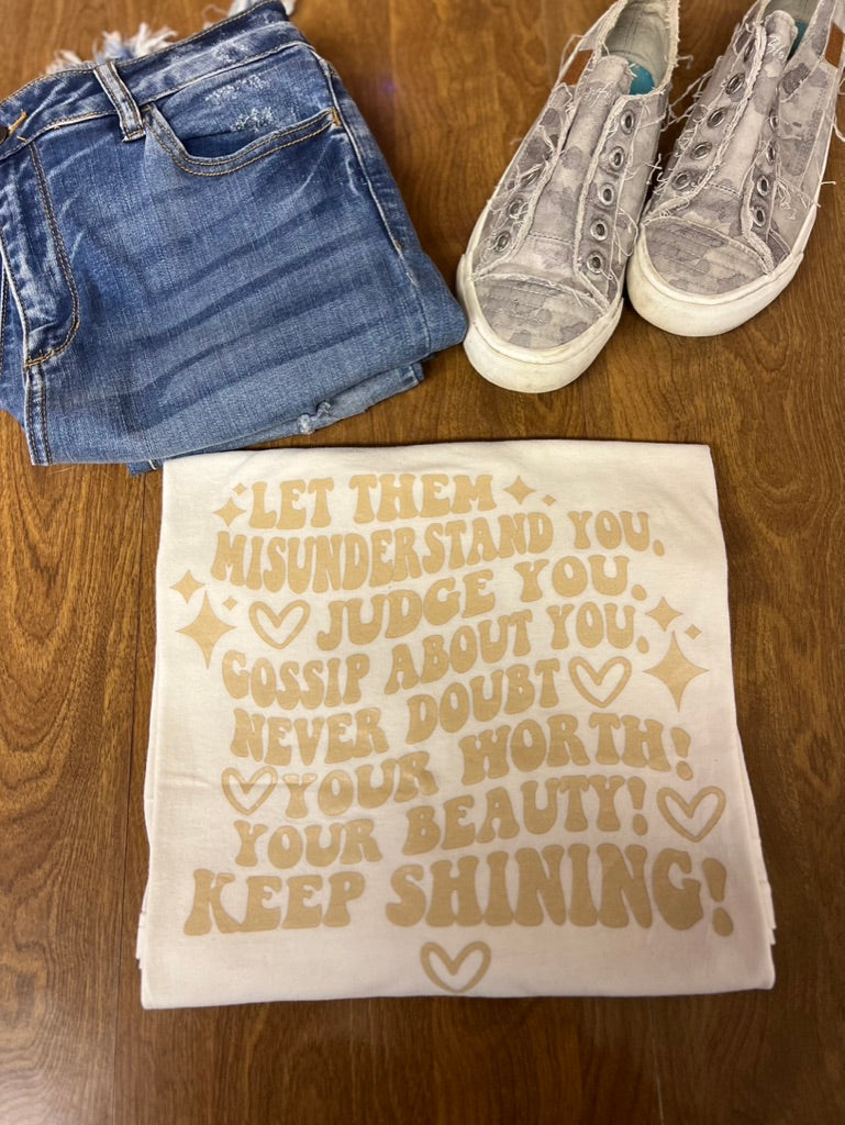 - Let them misunderstand you, judge you, gossip about you but never doubt your worth your beauty keep shining! brown screen print transfer on the back