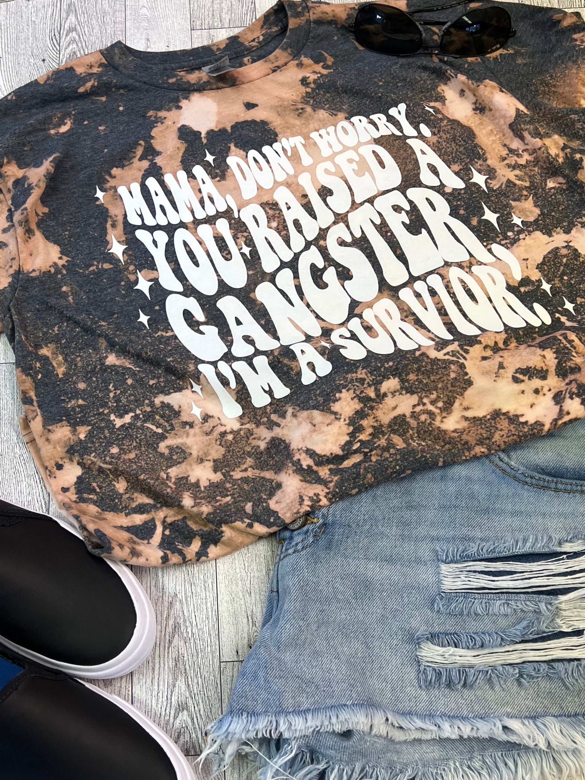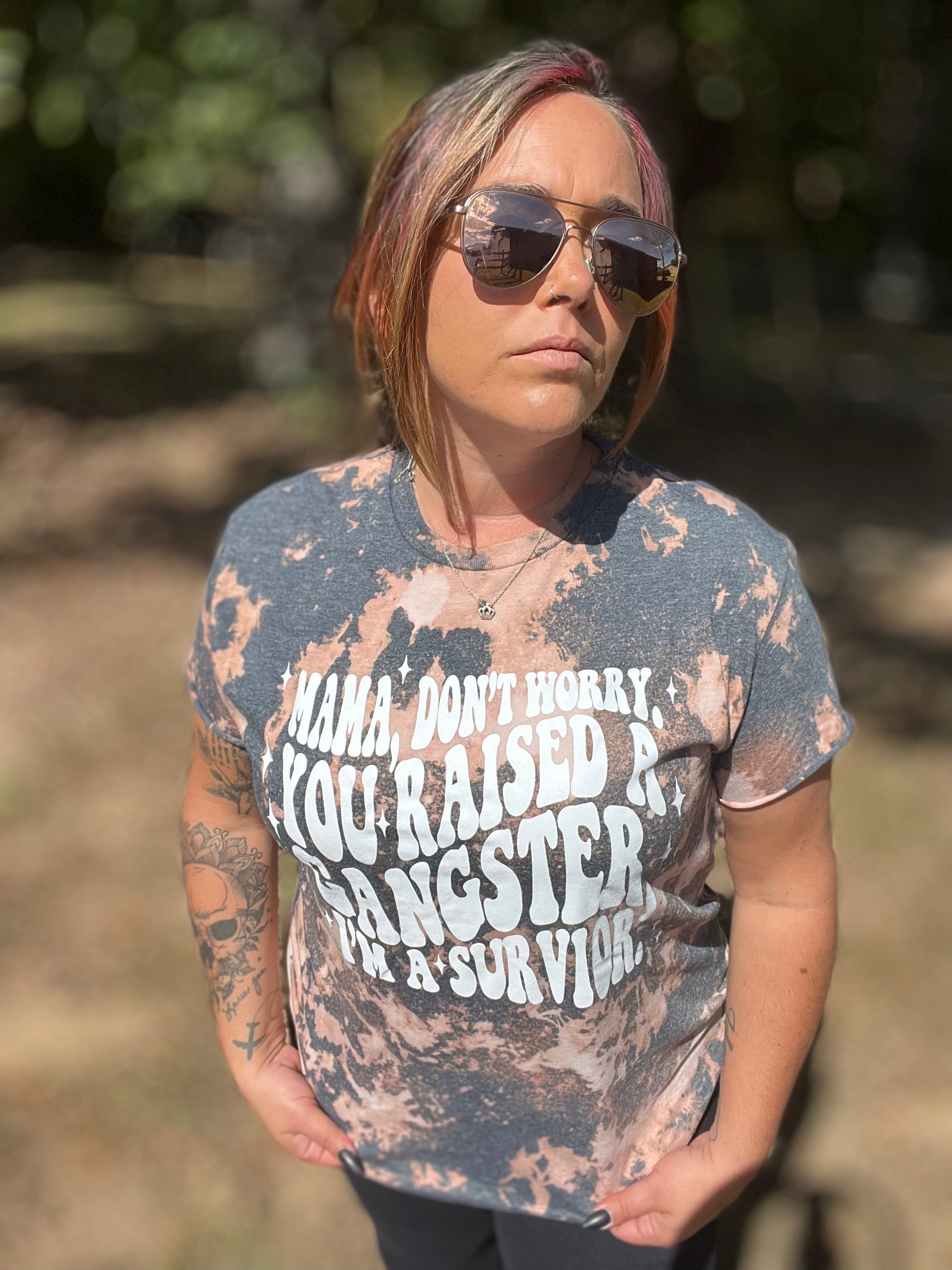- Mama, Don't worry you raised a gangster I'm a survivor white screen print transfer on front