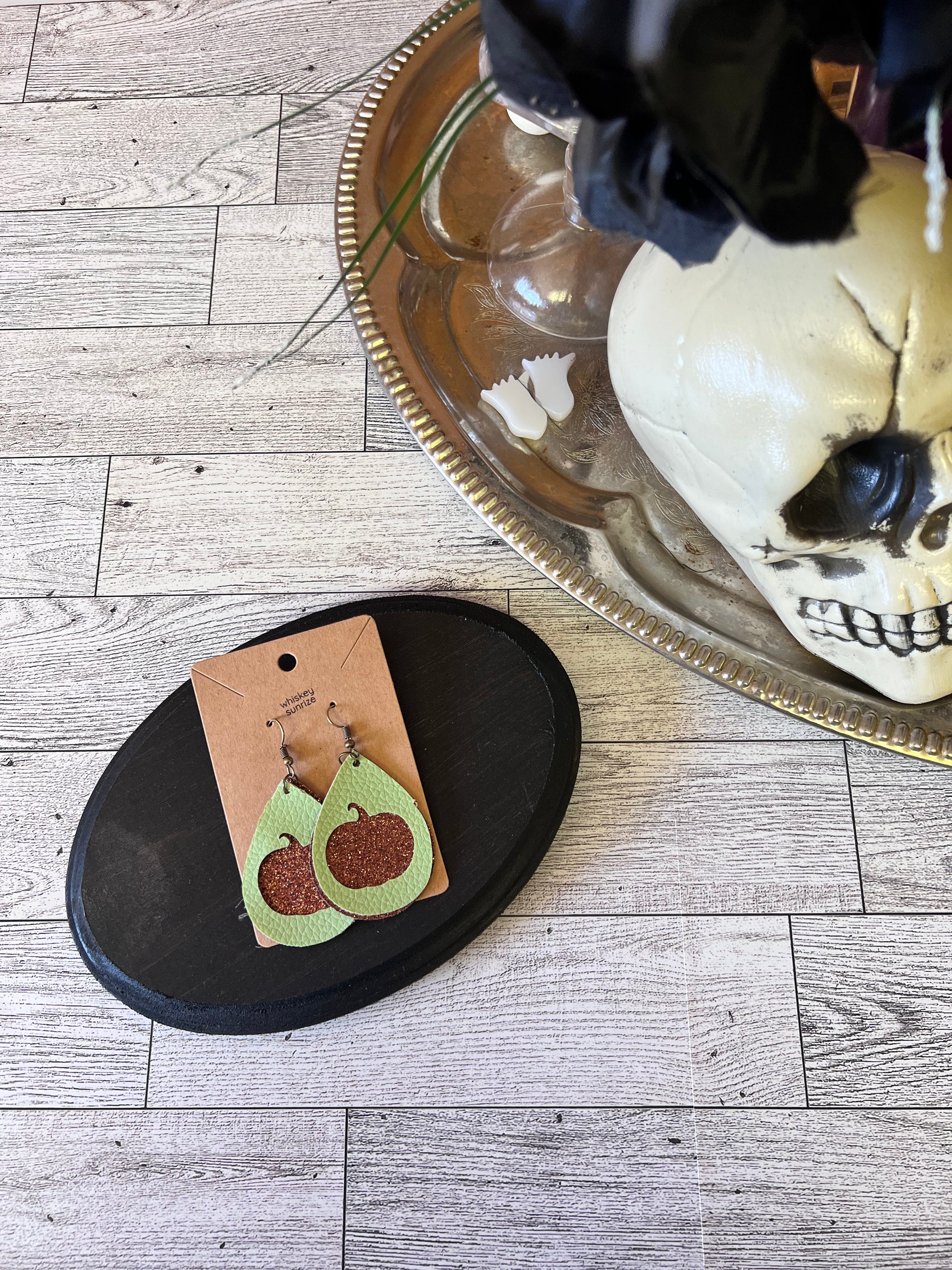 Turn a little Fall into a styleful treat with these ‘Hey Pumpkin’ earrings! Featuring a gold shimmer faux leather tear drop layered with a pastel green pumpkin tear drop, they’re like a "spooky chic" fashion surprise. So pick these earrings and you’ll be ready to show off your Halloween spirit in style!
