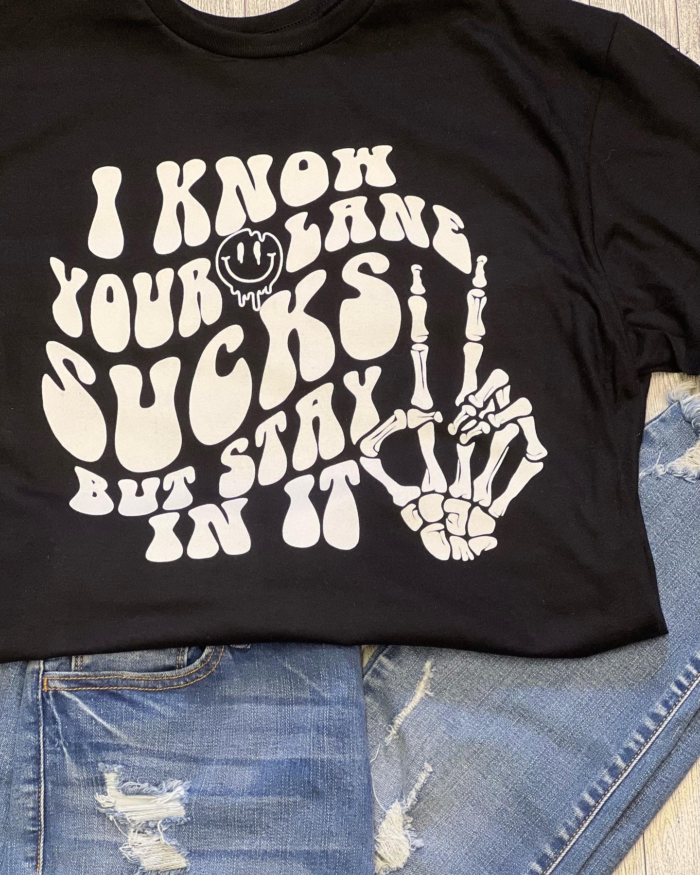 - I know your lane sucks but stay in it with a skeleton peace sign screen print transfer on the front