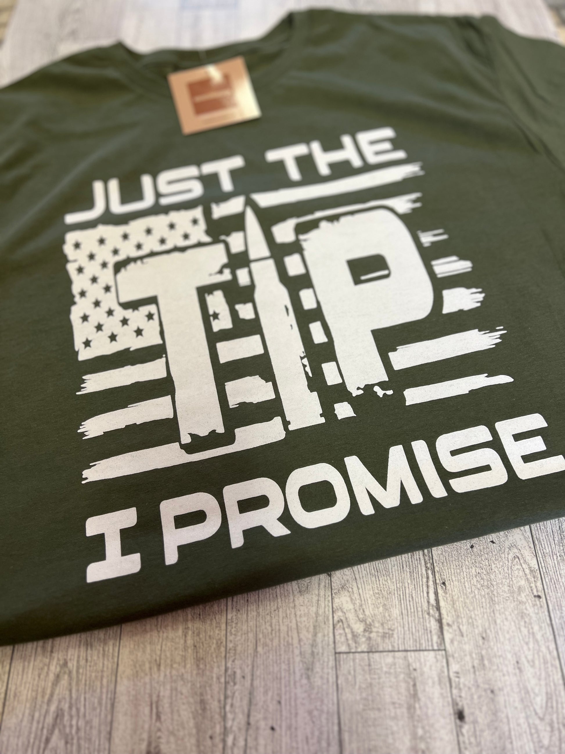 Introducing Just the T!p - the perfect accessory for the gun enthusiast with patriotic pride. Boasting a classic American flag design, you'll be sure to stand out at the range with this one-of-a-kind, no-frills piece. Just the T!p - Just the tip, we promise!