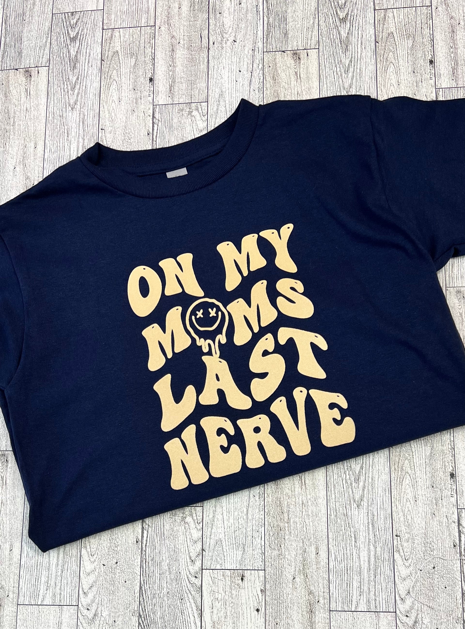 This "On My Mom's Last Nerve" Tee is the perfect way to let the world know who's really in charge. Show off your style and your sense of humor with this playful and stylish top - a must for any rebellious kid!