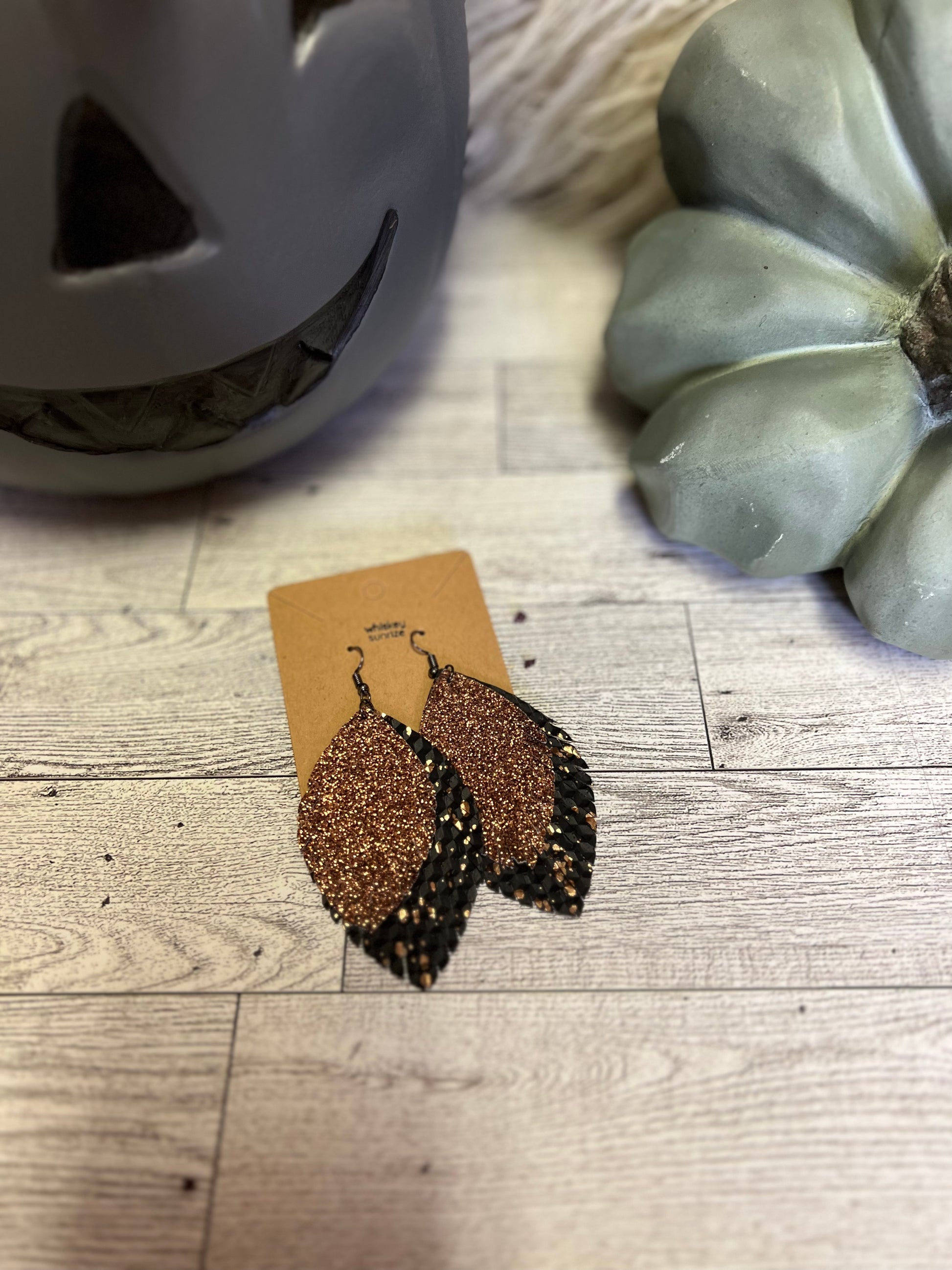Completely elegant and totally glam, these Shimmer & Gold earrings are a must-have for any fashionista! With their tear drop shape and luxurious faux leather, they'll add a splash of drama to any look. And they don't skimp on the glam, thanks to the dazzling gold and black sparkle - your outfit will be dripping with style!