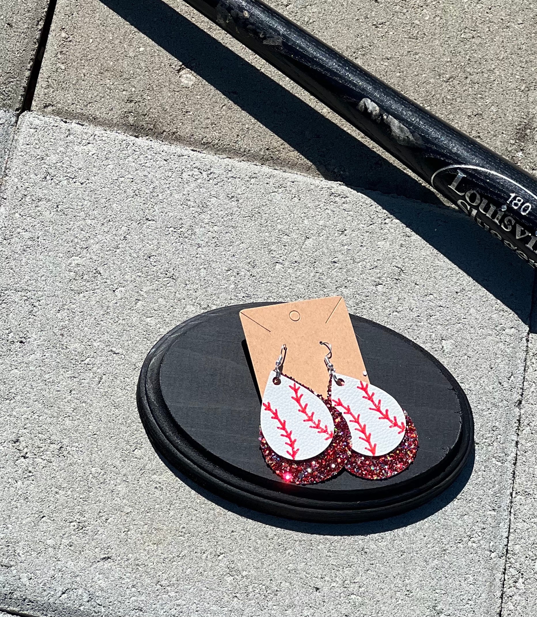 Show off your love for the game with these sparkly Baseball earrings! Whether you choose the red or silver sparkle, these faux leather statement pieces will have you hitting a home run with your look. So go out and make a big splash!
