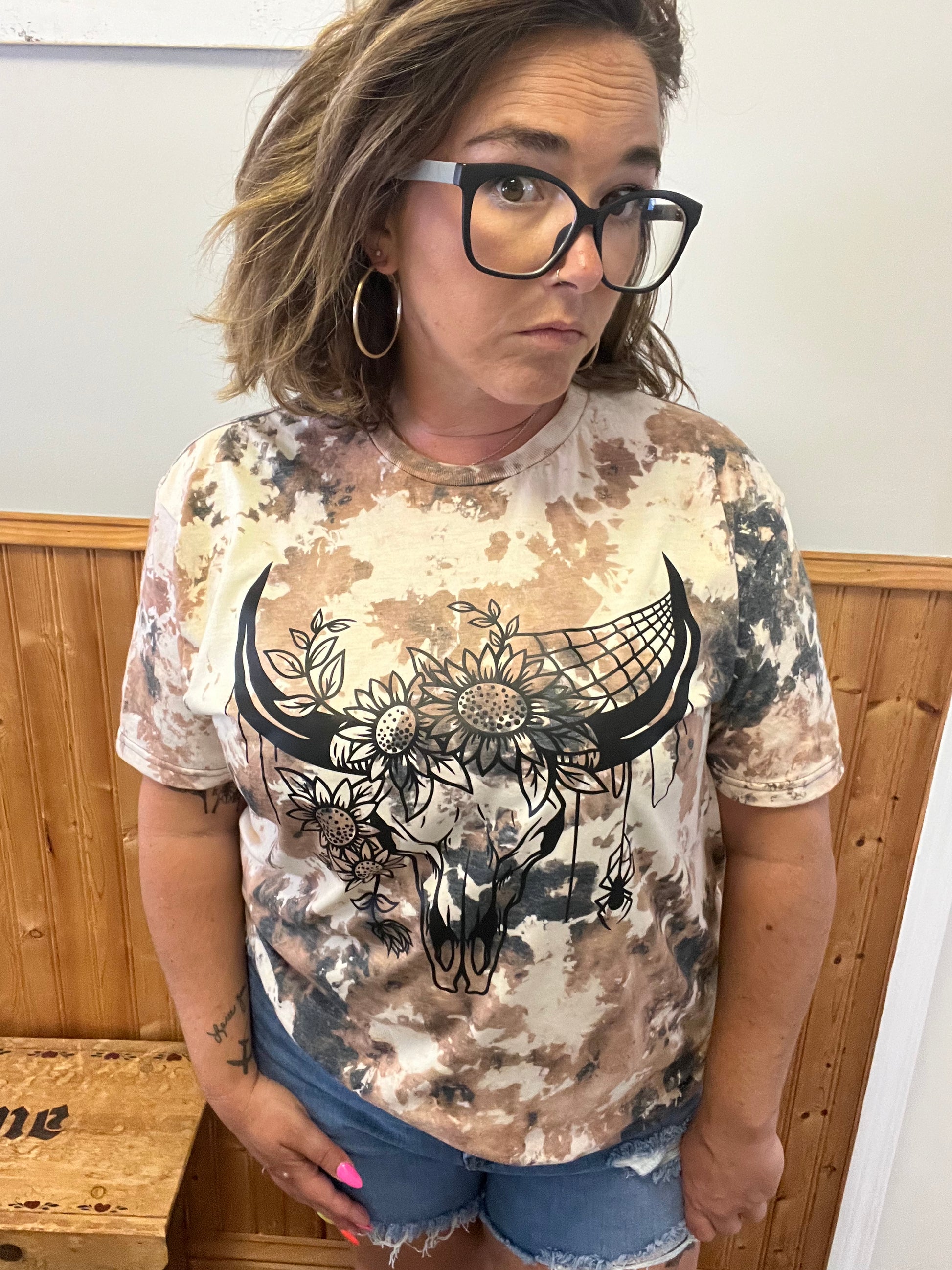 Our Western Boho Soft T-Shirt is the perfect way to kick up your look with its stylish bleach cowhide design. This top is comfy and lightweight for everyday wear, so you can stay dressed to impress without the fuss. Saddle up for a style like no other!