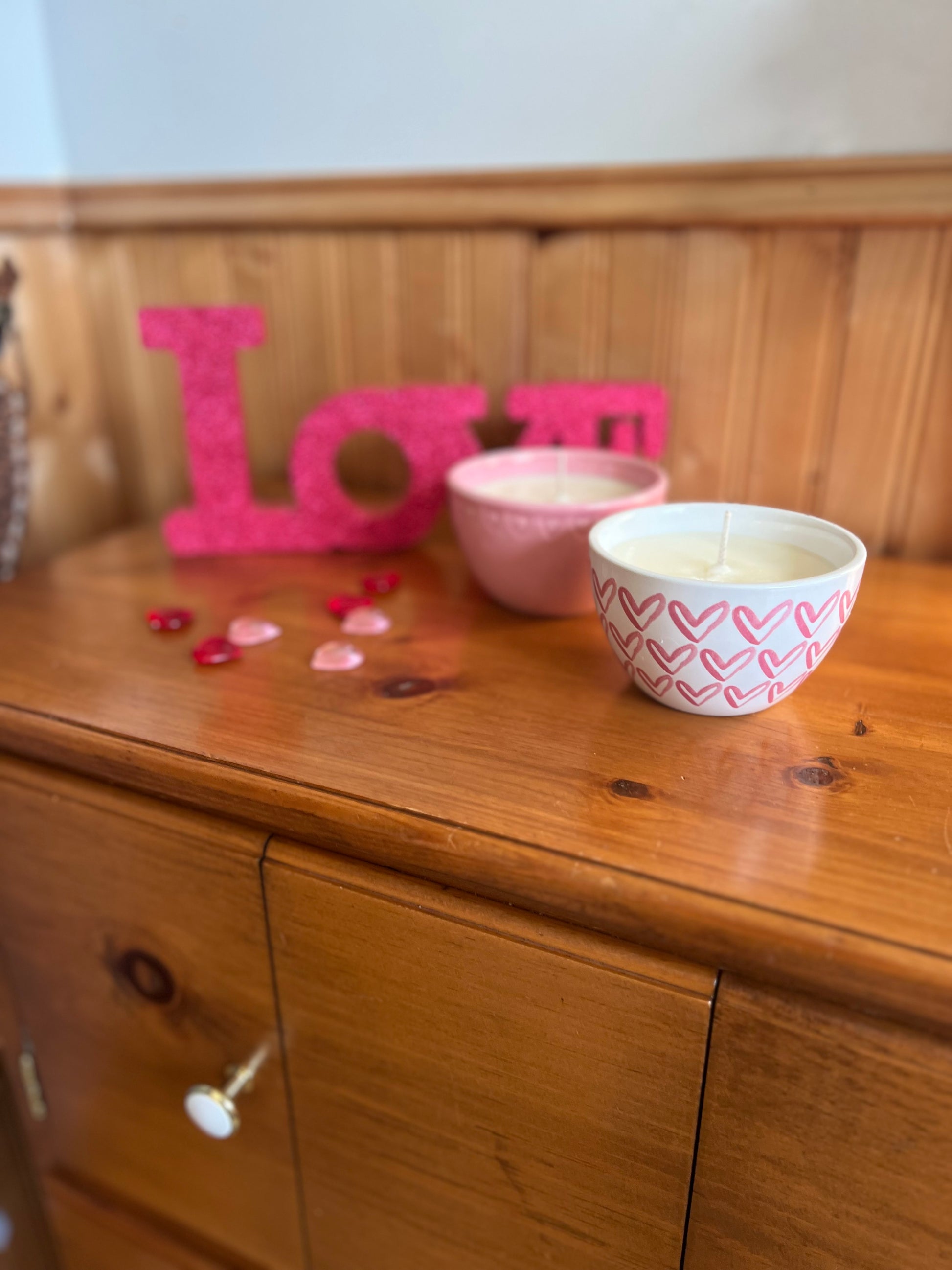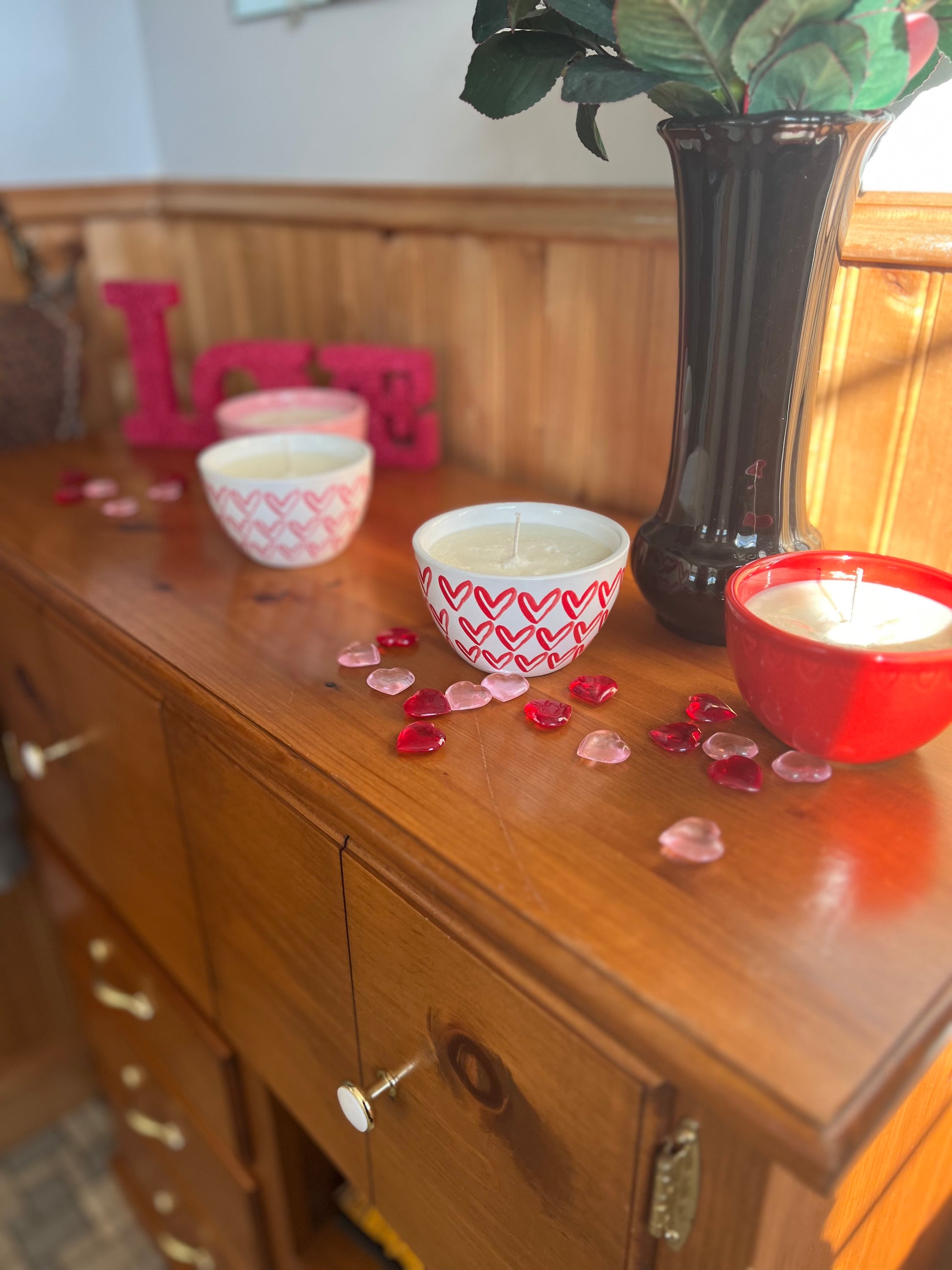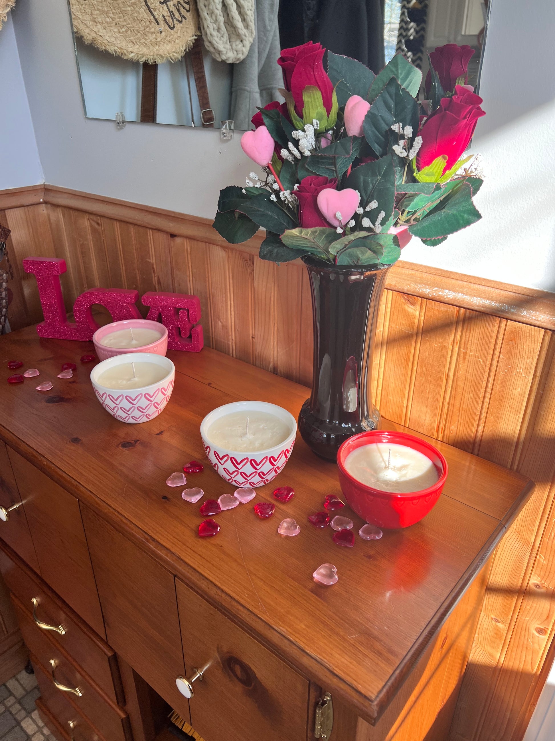 Elevate your senses with XOXO, the strawberry cheesecake scented soy wax candle. Hand poured with love, this reusable ceramic dish is adorned with an xoxo or solid red and pink design. Experience the sweetness and warmth of this quirky candle.